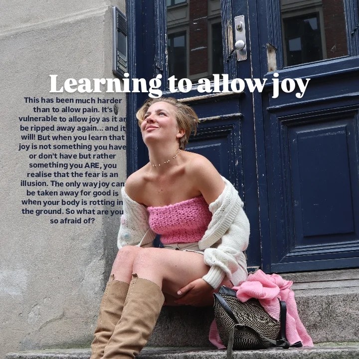 A: Going from invisible, inhibited and hyper alert everywhere and all the time, to being visible, free and relaxed has taken me basically all my 20’s to learn and it’s still a learning curve. It meant a lot of grieving how scared and worthless I felt, while being in so much doubt and mistrust, because I didn’t believe that it would ever change. Surrendering to the fact that I would never be free, finally made me stop fighting and grieve all that had happened up until that point. When you feel there is nothing ahead of you anymore, it feels like giving up, but really it’s more about giving in, to stop looking ahead and look behind instead. You can’t move forward if you haven’t yet accepted the past.